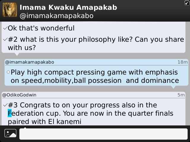 Mr Goddy : Congrats to on your progress also in the Federation cup. You are now in the quarter finals paired with El kanemi, What are the chances of your wards against the boys from maiduguri? Mr IMAMA : Luckily they are a team we know and have played against once this year, so I think its going to be an exciting game for both teams especially us. Mr Goddy : Ok nice to hear you buzzing with confidence ahead of the clash. The Globalcom premier league has been experiencing massive turn up of fans in our various centers especially the Rangers v Enyimba clash, Would u say it is because the european season that is off or our league is finally on the rise? Mr IMAMA : I think when you put out a good product it will sell. Having 19 wins away,34 draws in 19 league games speaks volumes. I don't think it has anything to do with the european leagues being on break. The turn out in the stadium has everything to do with the results. Mr Goddy : Thanks for your time Sir Mr IMAMA : Always my pleasuree